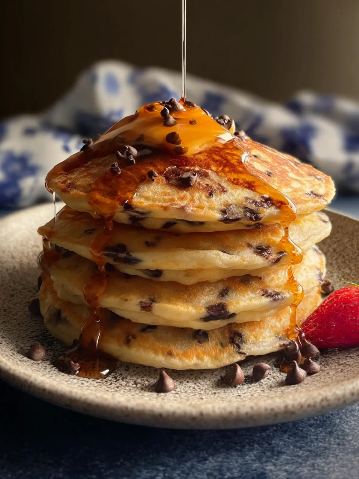 Fresh Strawberries or Sliced Banana: Adding these fresh fruits on top provides a refreshing contrast, bringing an extra layer of flavor to each pancake stack.